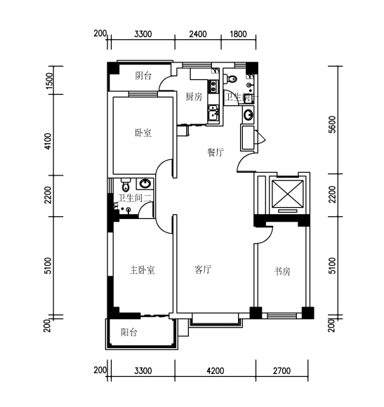 B3戶型100平米二室二廳一廚一衛(wèi)