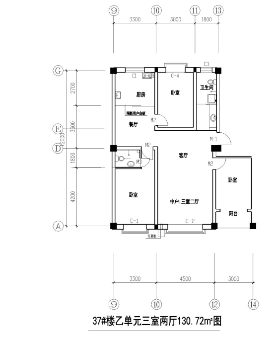 C4戶型130平米三室二廳一廚二衛(wèi)