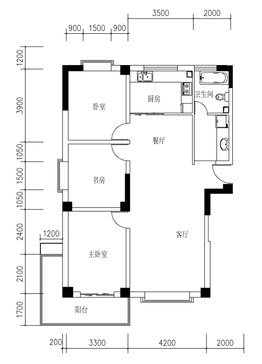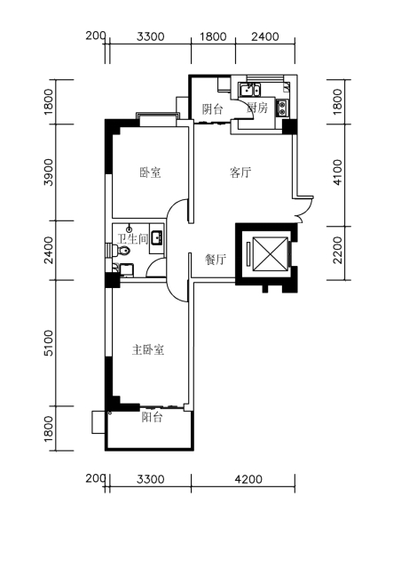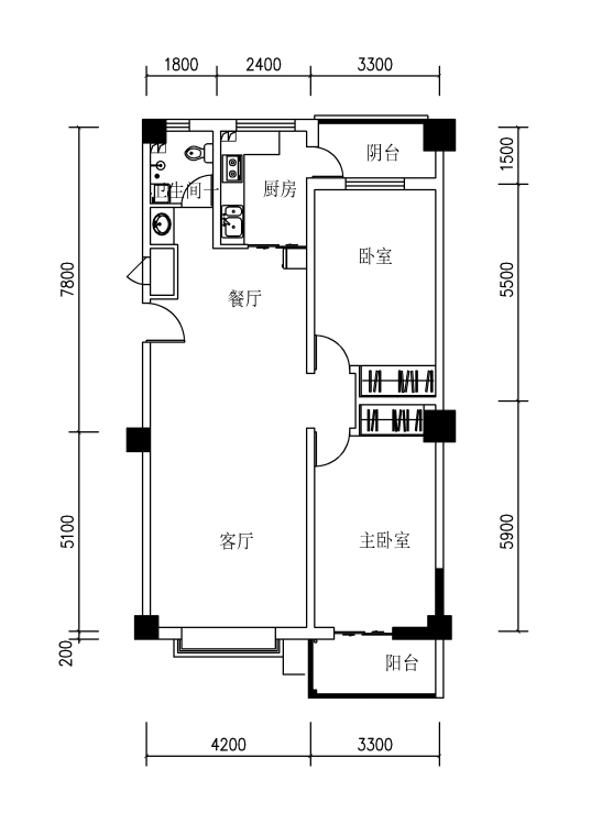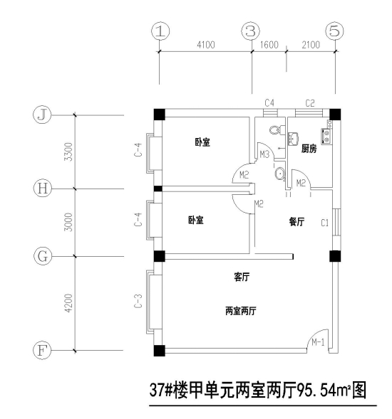 A4戶型95平米二室二廳一廚一衛(wèi)